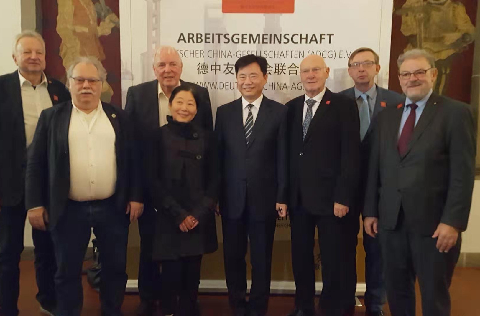 Vom 15. - 17. November fand im Duisburger Rathaus die Jahreskonferenz der Arbeitsgemeinschaft Deutscher Chinagesellschaften (ADCG) statt, dem auch die Deutsch-Chinesische Gesellschaft e.V. angehört und durch unsere Präsidentin Wei Qian im Vorstand vertreten wird. Die Tagung begann mit einem Besuch im Rechenzentrum der Duisburger Stadtwerke in Rheinhausen, wo das Projekt 'Smart City Duisburg', Digitalisierung und Künstliche Intelligenz vorgestellt wurde. Am Samstag fand nach Grußworten des Duisburger Oberbürgermeisters Sören Link, des chinesischen Generalkonsuls Feng Heyang und der Diplomatin Wang Wie von der Chinesischen Auslands- und Freundschaftgesellschaft CPAFFC zunächst die Mitgliederversammlung statt, in der das Präsidium neu zu wählen war und insgesamt für drei weitere Jahre gewählt wurde.
